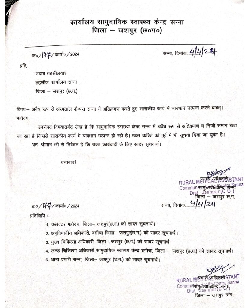 मामला जशपुर जिले के सन्ना क्षेत्र का है, जहां एक व्यक्ति द्वारा, जिसे स्थानीय लोग भाजपा का कथित कार्यकर्ता बता रहे हैं, अस्पताल की भूमि पर धीरे-धीरे कब्जा किया जा रहा है। बताया जा रहा है कि यह कब्जा लंबे समय से जारी है और समय के साथ इसका दायरा बढ़ता जा रहा है।