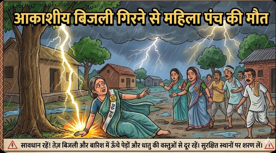जशपुरनगर -: प्राप्त जानकारी के अनुसार ग्राम पंचायत चम्पा के वार्ड क्रमांक 16 की वार्ड पंच जासिंता पैकरा, पति कलिंद पैकरा, की आकाशीय बिजली की चपेट में आने से मौके पर ही मौत हो गई। बताया जा रहा है कि घटना उस समय हुई जब क्षेत्र में अचानक मौसम खराब हो गया और तेज गरज-चमक शुरू हो गई। इसी दौरान बिजली गिरने से महिला चपेट में आ गईं।