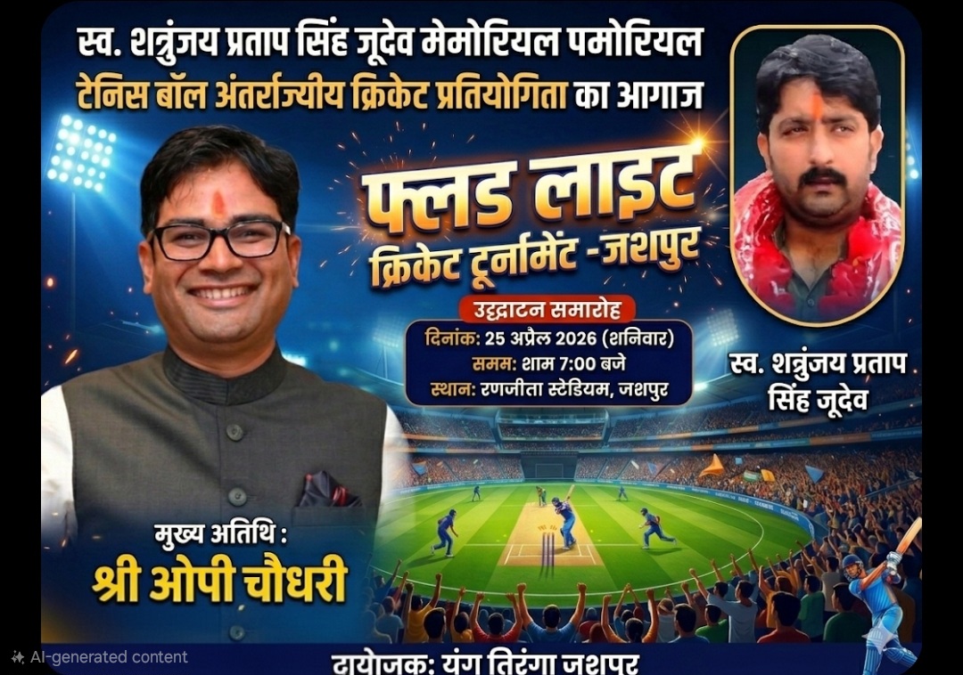 जशपुरनगर -: खेल प्रेमियों के लिए बड़ी खुशखबरी सामने आई है। शहर के रणजीता स्टेडियम में आयोजित होने वाली स्व.शत्रुंजय प्रताप सिंह जूदेव मेमोरियल फ्लड लाइट टेनिस बॉल अंतर्राज्यीय क्रिकेट प्रतियोगिता का शुभारंभ 25 अप्रैल से होने जा रहा है। इस प्रतिष्ठित प्रतियोगिता के उद्घाटन समारोह में छत्तीसगढ़ के वित्त मंत्री ओपी चौधरी मुख्य अतिथि के रूप में शामिल होंगे।