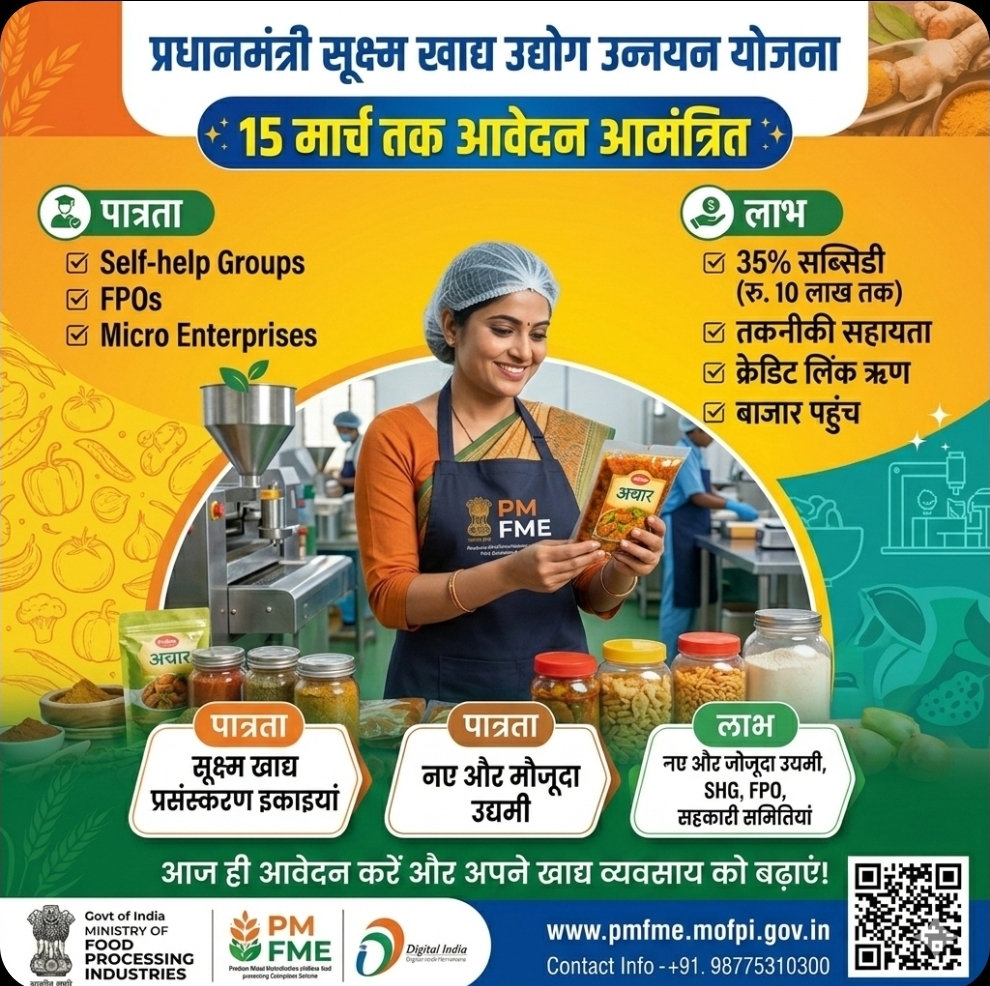 जशपुरनगर -: जिले में सूक्ष्म खाद्य प्रसंस्करण उद्योगों को बढ़ावा देने एवं स्थानीय उद्यमियों को स्वरोजगार से जोड़ने के उद्देश्य से वाणिज्य एवं उद्योग विभाग द्वारा संचालित प्रधानमंत्री खाद्य उद्यम उन्नयन योजना अंतर्गत आवेदन पत्र आमंत्रित किए गए हैं। इच्छुक आवेदक दिनांक 15 मार्च तक आवेदन प्रस्तुत कर सकते हैं।