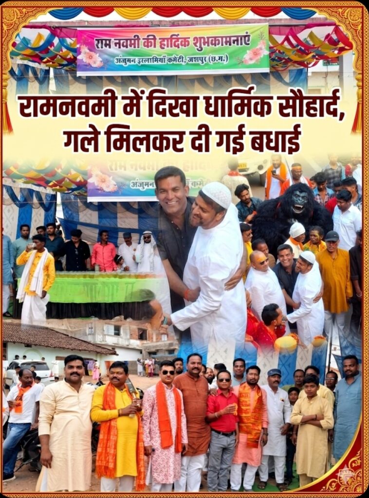जुलूस के दौरान कई स्थानों पर ऐसा भावुक दृश्य देखने को मिला, जब हिंदू और मुस्लिम समुदाय के लोग एक-दूसरे को गले लगाकर रामनवमी की शुभकामनाएं दे रहे थे। यह दृश्य जशपुर की गंगा-जमुनी तहजीब और सामाजिक समरसता का जीवंत उदाहरण बन गया।